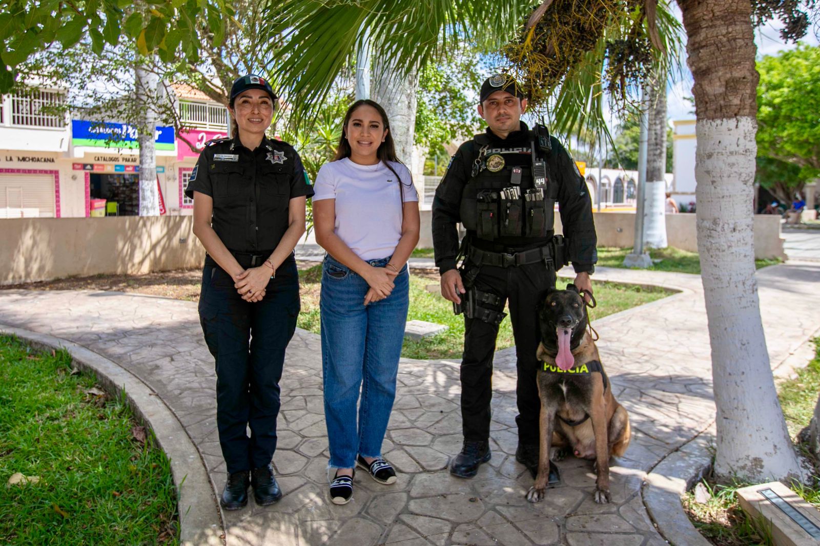 Felipe Carrillo Puerto, Quintana Roo.— La presidenta municipal, Mary Hernández, presentó de manera oficial al binomio canino Kamil, que se integrará a las labores de la Dirección de Seguridad Pública para reforzar las acciones de prevención y combate al delito en el municipio.