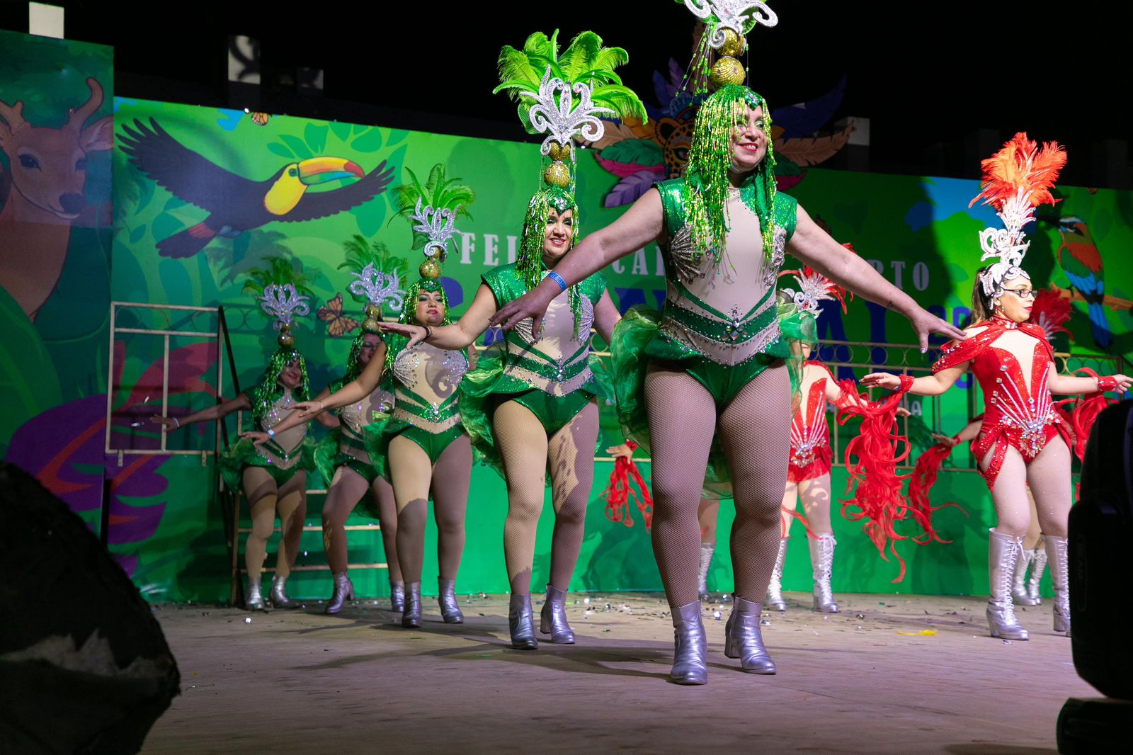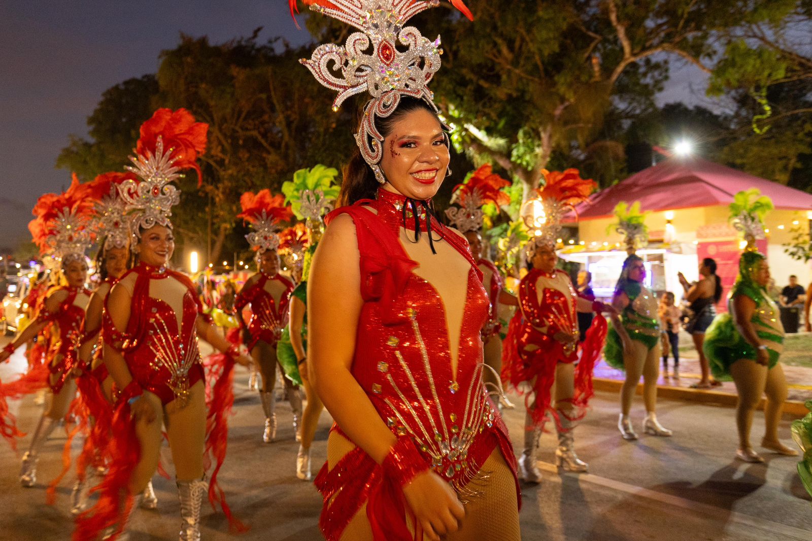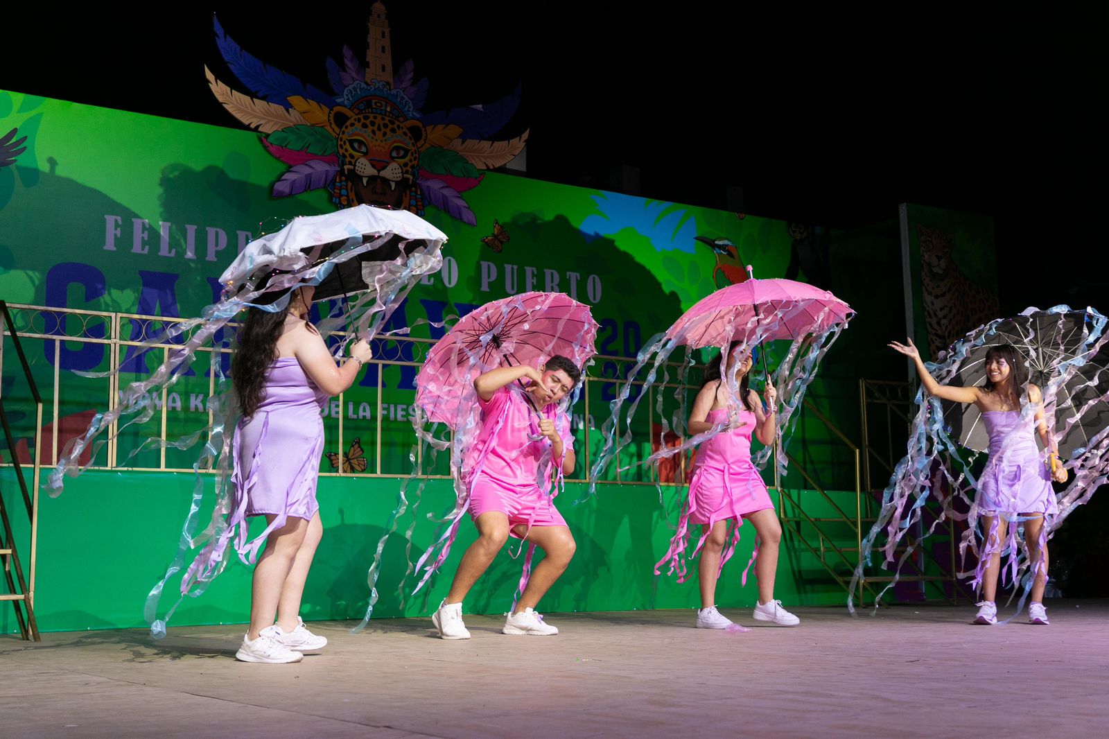 Las comparsas participantes en la categoría fueron fantasía Vahiana de Bacalar, dinastía Caribeña de Chetumal, tierra festeira de Felipe Carrillo Puerto, Pasión Latina de Cozumel y la Academia Caribeña de Playa del Carmen.